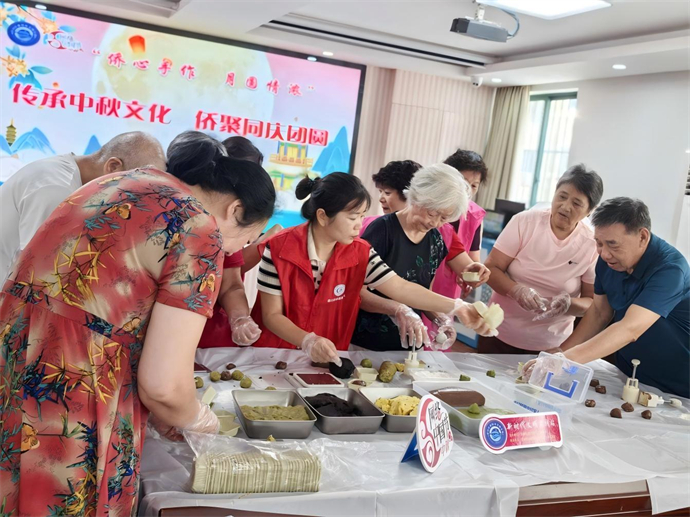 9月24日,陈桥街道侨联分会联合五里树社区开展“月满侨乡 饼承心意”DIY月饼活动。社区活动室内甜香四溢,冰皮粉、低糖馅料、模具等材料一应俱全。来自烘焙工作室的老师细致讲解制作流程,社区工作人员与志愿者全程协助。侨眷们边做边聊,笑声不断。“在家门口做月饼,还能和老朋友叙旧,太有意义了!”侨眷陈阿姨举着自己制作的“中秋快乐”月饼,笑容满面。活动结束后,社区还为每位侨眷送上节日慰问品,传递组织的关怀。