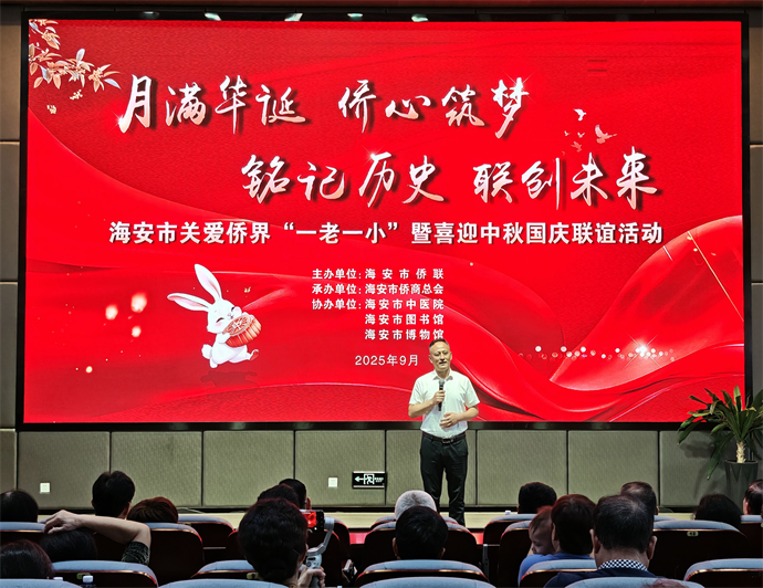 9月30日上午,“月满华诞 侨心筑梦 铭记历史 联创未来”海安市关爱侨界“一老一小”暨喜迎中秋国庆联谊活动在海安市图书馆举办。