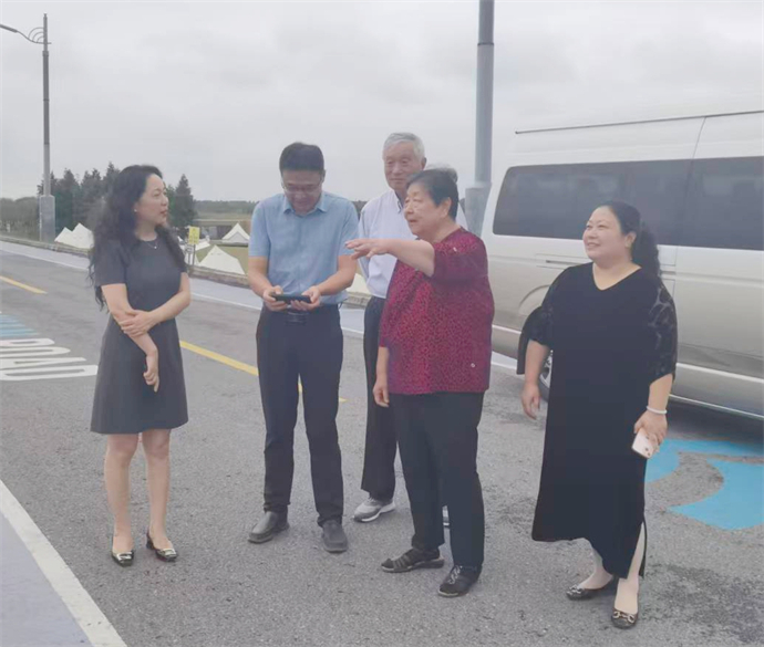 顾履冰教授一行首先来到滨江绿廊——这里曾是她童年熟悉的地方,如今已蜕变为一条风景如画的生态廊道。故地重游,面对水清岸绿、城景交融的现代化景观,她感慨万千,童年的记忆与眼前的巨变形成鲜明对比。她由衷赞叹家乡在城市建设方面取得的卓越成就,对启东城市高质量发展给予了高度评价。