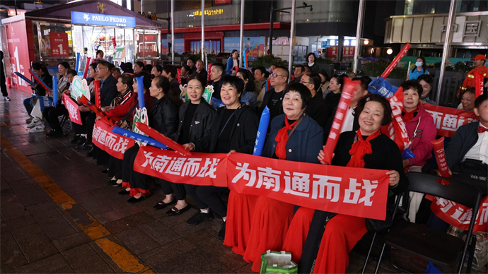 秋雨微凉,热情不减。10月19日晚,尽管气温骤降、细雨濛濛,但南通南大街文峰大世界门前广场却人头攒动、暖意融融。一场由南通市侨联主办,崇川区侨联、和平桥街道党工委、南通市侨联侨谊会、南通文峰大世界承办的“为苏超喝彩,为南通加油”文艺演出在南大街第二现场精彩上演,而与此同时,所有参加本次活动的侨眷海外亲人们也正在越洋互动,同步观赛。用艺术的温度驱散寒意,以侨界的声浪为家乡喝彩,生动诠释了“让世界看见南通”的活动主题。“苏超”全域观赛在南通又有了新高度,第二现场已延伸海外。