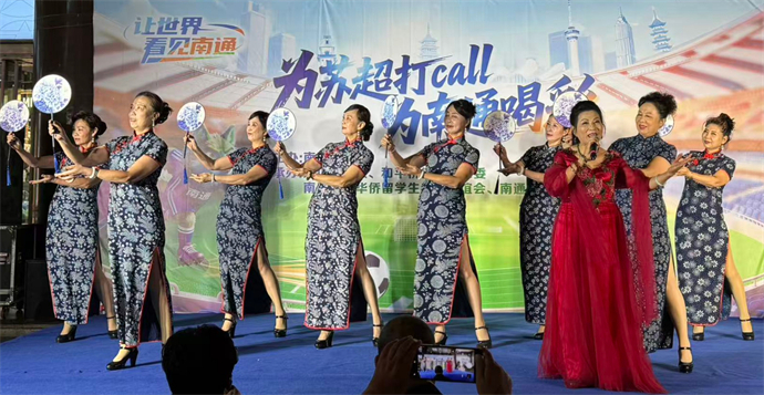 “我们今天在这里献上一场演出,不仅是代表20万侨界群众为苏超南通队打call,更是通过这种沉浸式参与,和海外的亲人同频共情,让世界看到南通的精彩!”南通市侨联侨谊会会长、澳大利亚侨眷李小萍动情地说。活动现场,两侧电子大屏还插播了海外侨胞为南通球员加油的视频,这份跨越山海的祝福,让现场氛围更加热烈。